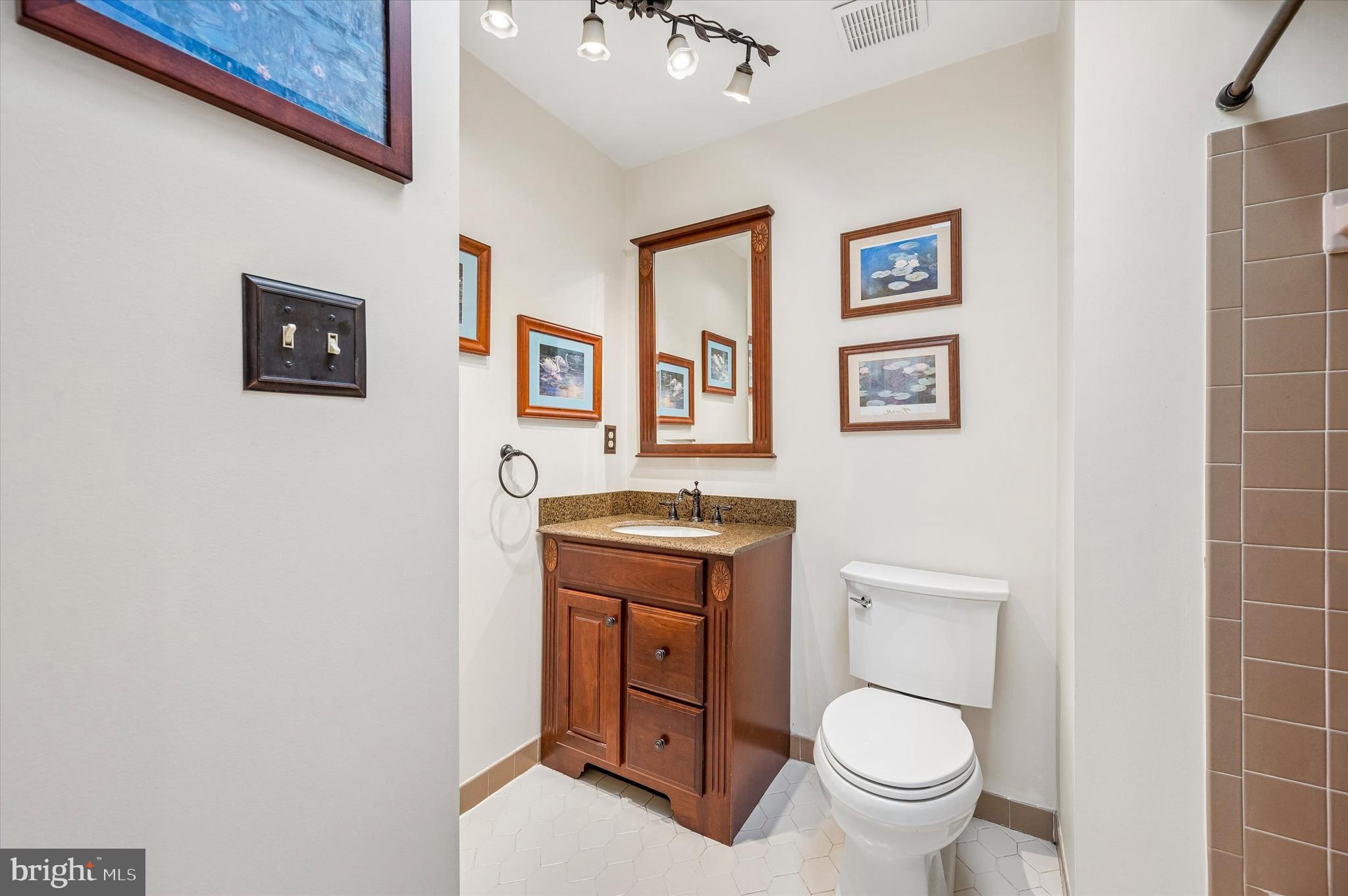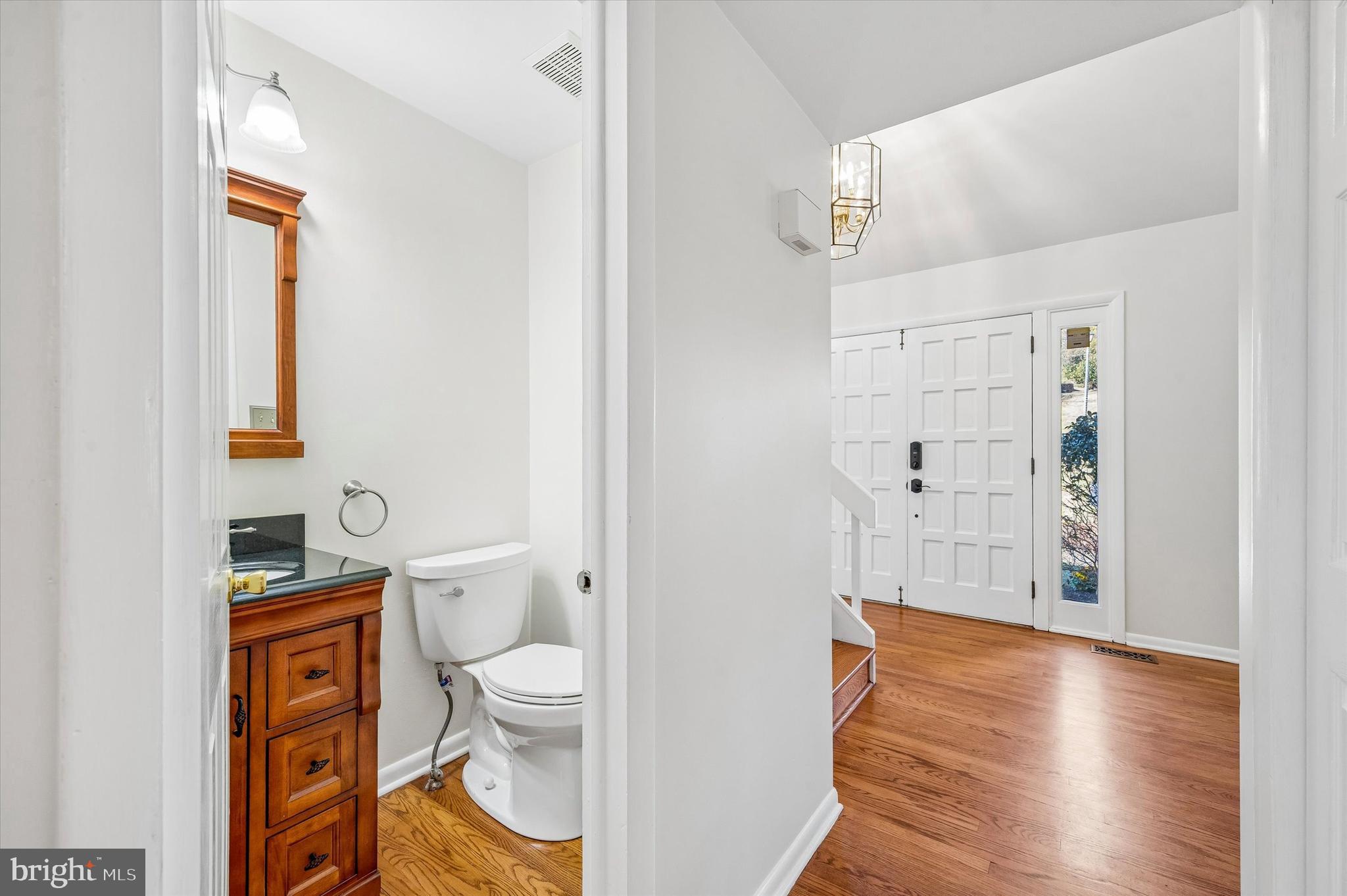 At the heart of the home is the impressive 24' x 24' gourmet kitchen, designed for both daily living and effortless entertaining. Rich cherry cabinetry, gleaming granite countertops, and an oversized island create a natural gathering space. Thoughtful details include a farmhouse sink with hidden spice pull-out columns and a dedicated appliance garage to keep countertops streamlined. The Frigidaire induction cooktop and GE wall oven along with a GE Advantium Speed oven/microwave and other stainless appliances are ready for your culinary creations. This kitchen offers every modern convenience. A built-in desk area offers a practical command center for managing the rhythm of daily life. Just beyond the island, beautiful windows frame the serene views of mature trees and natural greenery, creating a peaceful sense of privacy and calm. It's the perfect spot to enjoy a quiet morning coffee while watching birds move through the trees, wildlife pass by, and the seasons gently change outside your window. The kitchen flows seamlessly into the inviting family room, where a gas fireplace provides the perfect place to unwind. Nearby, the formal dining room is ideally positioned for gatherings and holiday celebrations. The main level also includes a freshly painted powder room and convenient laundry room with access to the rear deck, making indoor-outdoor living easy.