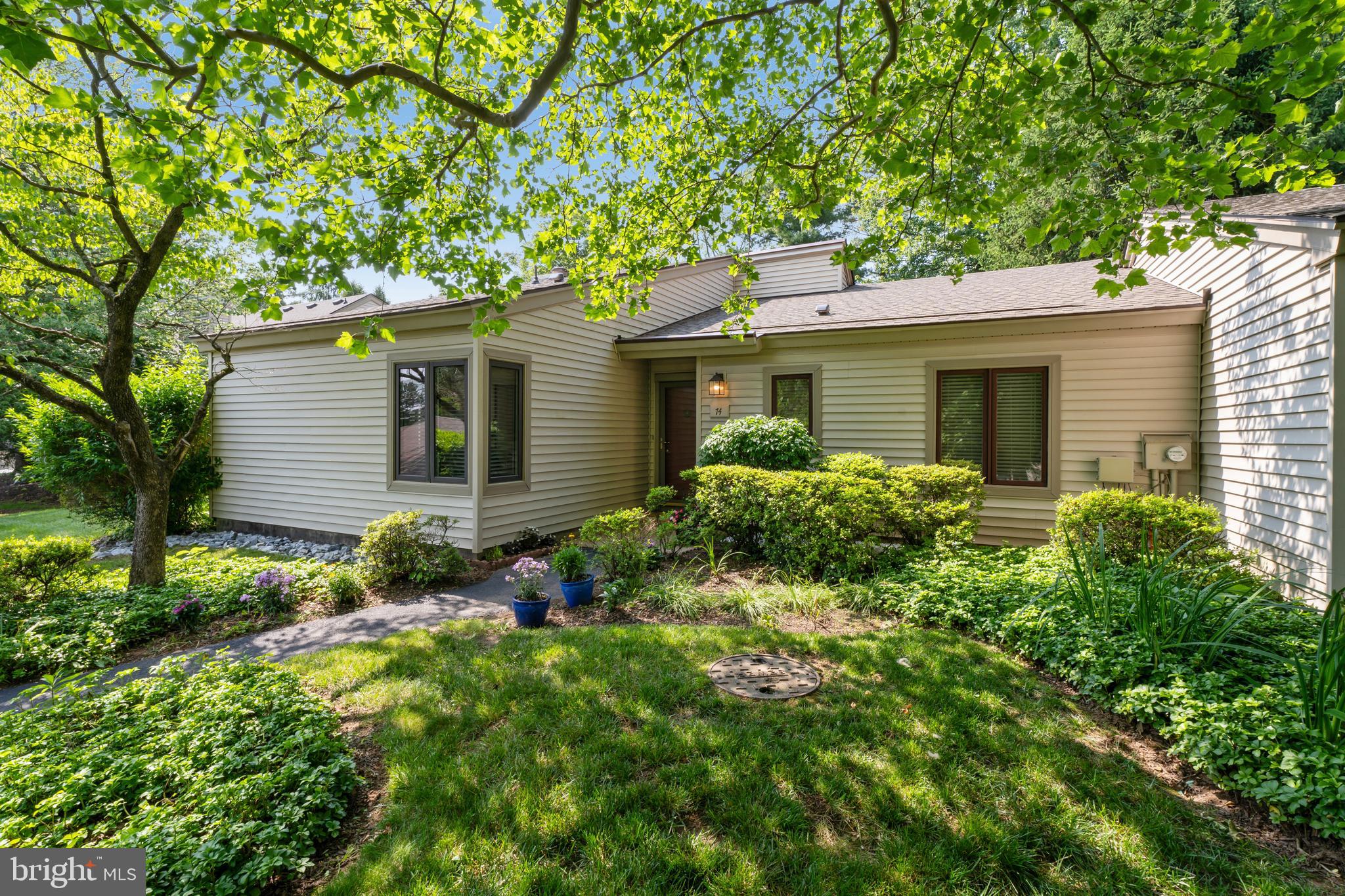 Welcome to 74 Ashton Way, nestled in the desirable Hershey's Mill community in West Chester, PA. This charming home offers a perfect blend of comfort and convenience, featuring two bedrooms and two bathrooms spread across 1,284 square feet of single-story living. As you step inside, you'll immediately feel at home in the inviting foyer, which leads you into a spacious living room where a cozy fireplace sets the tone for relaxing evenings. The sliding glass door in the living room opens to a private patio, bringing in natural light and providing a seamless transition between indoor and outdoor living. Adjacent to the living room, you'll find a dining area that connects to a spacious eat-in kitchen that boasts all new stainless steel appliances. Whether you enjoy intimate meals or entertaining guests, this kitchen is equipped to handle it all with style and functionality. The primary bedroom is a tranquil retreat, complete with a generous walk-in closet and a charming window seat. Additional storage available in a partially floored attic. The second bedroom is conveniently situated near a hallway bath that boasts a tub and shower combination. Additional amenities include air conditioning for year-round comfort and a detached garage that provides ample secure storage and parking space. As a resident of Hershey's Mill, you'll have access to an array of community facilities, including walking trails, a sparkling pool, tennis courts, and more, enhancing your lifestyle with recreational opportunities right at your doorstep.